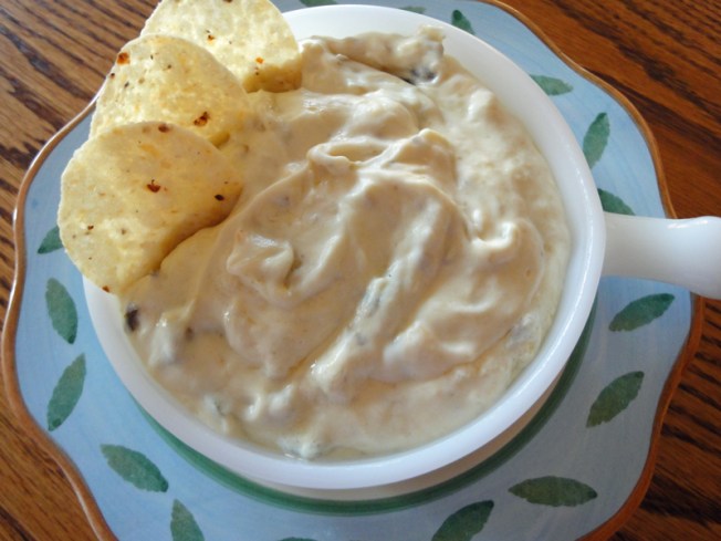Microwave for 3 minutes and then stir.  Microwave for another 3 minutes.  Serve with tortilla chips.