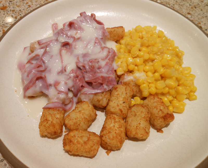 This is a quick and easy meal when you are in a hurry or just can’t decide what to have for supper. Just have a package of frozen tater tots in the freezer and a jar of dried beef in the pantry. All the rest is staples. Of course, you don’t have to serve it on tater tots. Try biscuits or toast.