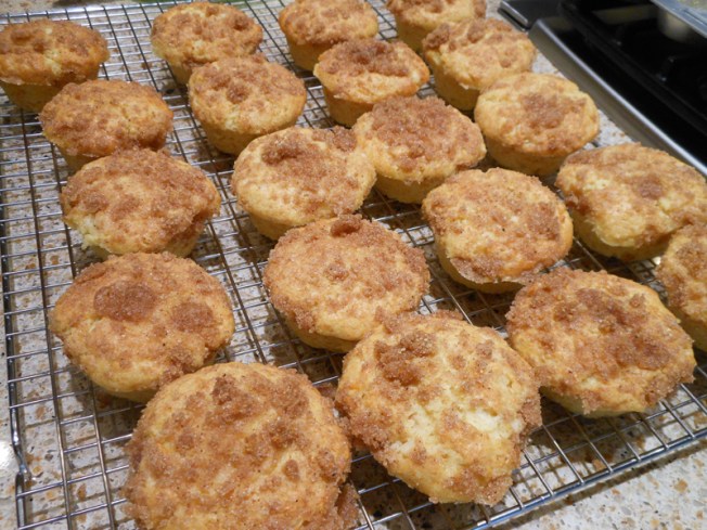 Bake until done, 20 to 22 minutes.  Remove muffins from oven and let cool for 5 to 10 minutes before taking out of pans.  Cool on wire rack.  Eat warm.