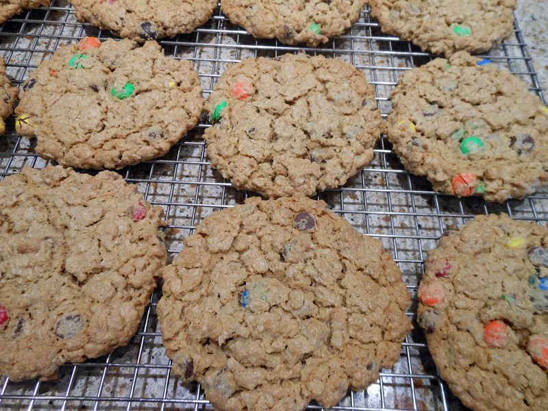 These cookies contain oats, peanut butter and chocolate. They are big in size, but can be made smaller. The kids will gobble them up.