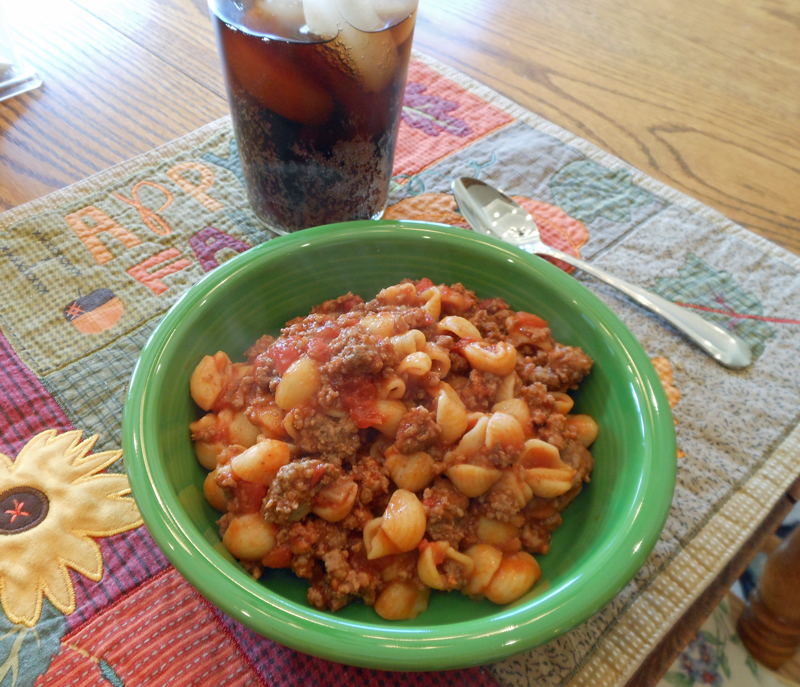 This is a quick and easy meal to make. I think I have made this since the day I got married almost 54 years ago. It is total comfort food! Sprinkle some cheese on top if you like, but I like mine without. Serve with green beans or a salad.